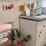 Dairede tam donanımlı mutfak ile 1 banyo odası vardır.